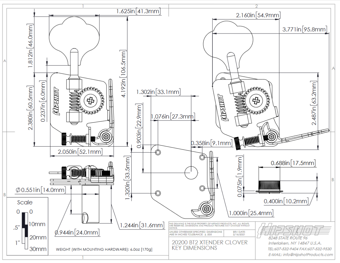 1 MECANIQUE HIPSHOT 20200N BT2 POUR FENDER PERIODE 1967-82