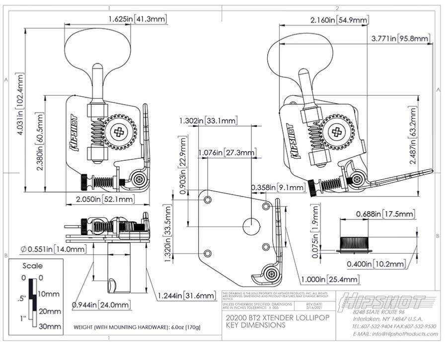 1 MECANIQUE HIPSHOT 20200N BT2 LOLLIPOP FENDER 1967-82