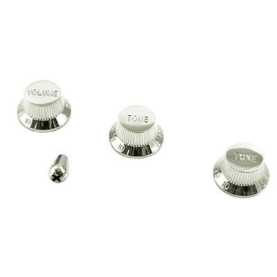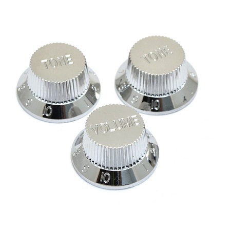 3 BOUTONS STRAT PLASTIQUE US CHROME + EMBOUT