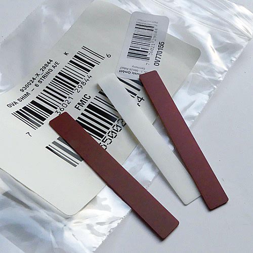 NB : nous recevons parfois 3 cales de 2x0.7mm et 1x1mm (épaisseur) et parfois 4 cales de 0.7mm. Le contenu peut donc varier.