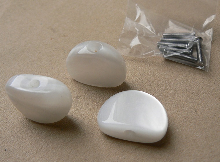 6 boutons plastique pearloid de forme GROVER pour boutons en configuration 3 mécaniques d'un côté et 3 de l'autre (on dit que ce sont des gros boutons par rapport aux petits boutons qui se mettent sur des petites têtes ou des guitares avec 6 mécaniques d'un seul côté ; et les guitares douze cordes pour être complet)