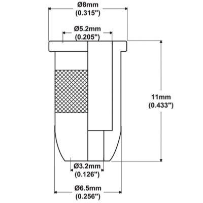 8mm pour le rebord qui reste hors du corps
