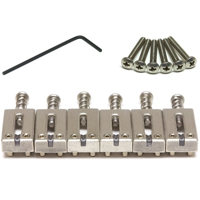 Pontets en polymère. Matériau auto lubrifiant (5 fois supérieur au graphite). A chaque mouvement de la corde, un mince filet de Téflon (le lubrifiant interne le plus efficace) est créé. Le son est plein et plus brillant avec plus de sustain que le cuivre ou le métal.