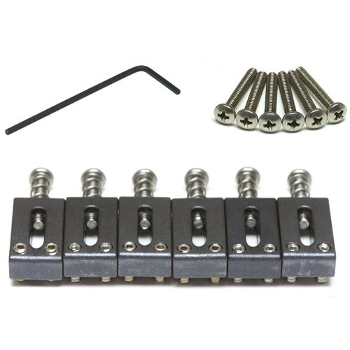Pontets en polymère. Matériau auto lubrifiant (5 fois supérieur au graphite). A chaque mouvement de la corde, un mince filet de Téflon (le lubrifiant interne le plus efficace) est créé. Le son est plein et plus brillant avec plus de sustain que le cuivre ou le métal.