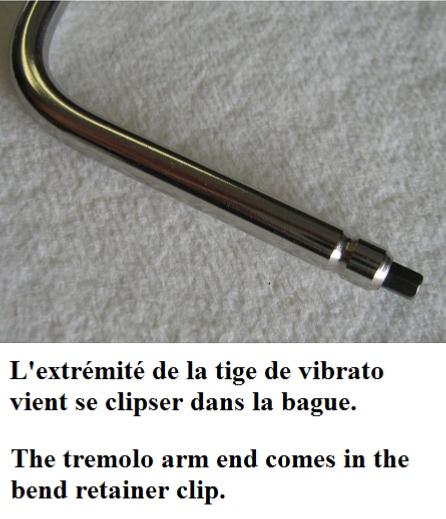 Nous avons mis une photo pour vous montrer comment se visse la tige de vibrato qui s'enfonce. Il s'agit de la tige que Fender appelle Pop in référence 0992300100.