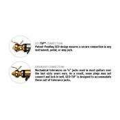 Les tolérances mécaniques des jacks 1/4" présentent souvent de gros écarts, entraînant une connexion de mauvaise qualité. Cherchant toujours à innover, Planet Waves a concu le connecteur breveté GEO-TIP et s'est associé à Neutrik pour le produire dans leur installation de pointe au Lichtenstein. La forme unique du GEO-TIP garantit une connexion sûre pour tous les instruments, pédales ou amplis.