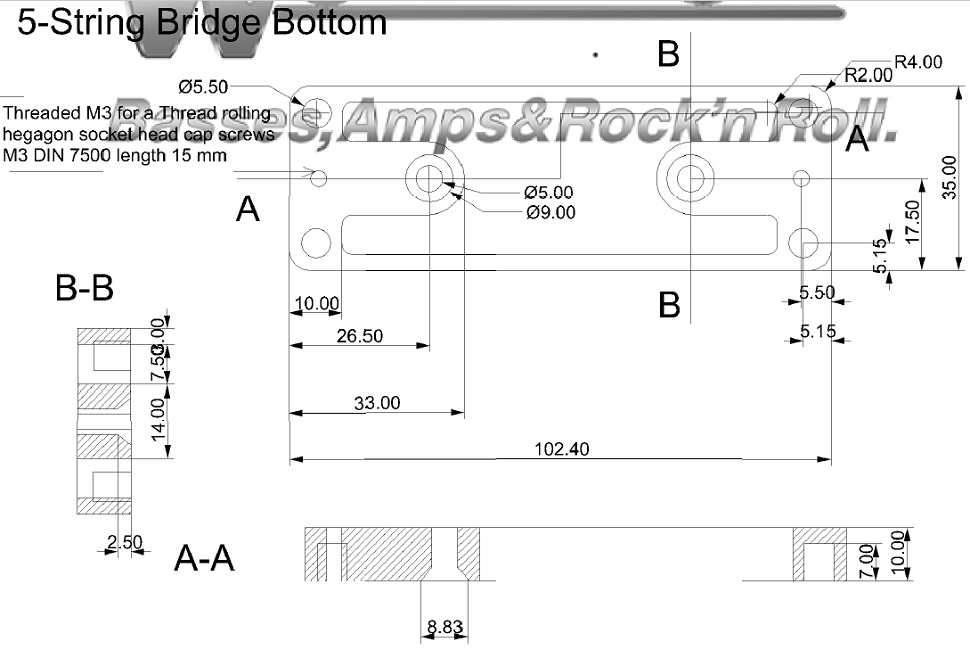 CHEVALET BASSE 2 PIECES WARWICK 5 CORDES NOIR
