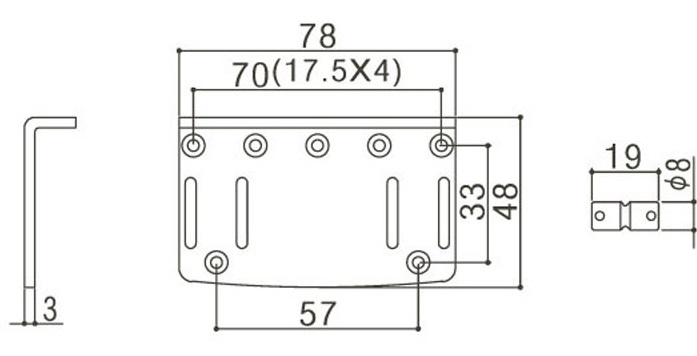 Écartement des vis de fixation : 70mm à l'entraxe