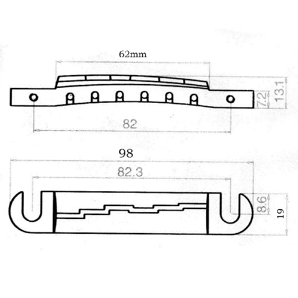 Ecartement standard : 82mm à l'entraxe (au milieu des rivets)