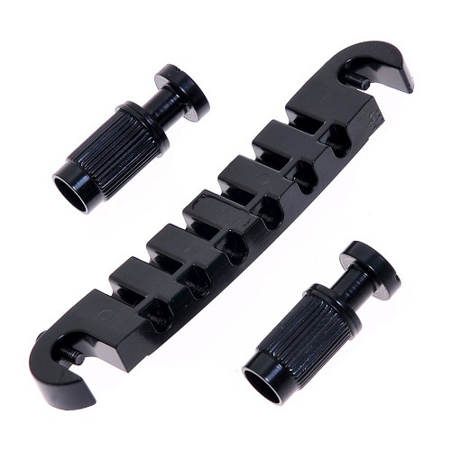 Pas de vis asiatique de type M8 (signifie système métrique 8mm) ; ne peut se visser sur un rivet d'une guitare américaine qui utilise un pas de vis anglo-saxon (inch). Autrement dit, si vous voulez juste visser les inserts sur les rivets déjà installés sur votre guitare, il faut que votre guitare possède un cordier asiatique ou métrique (exemple avec Schaller). Si vous avez une guitare haut de gamme made in US, le pas de vis est anglo-saxon. Ce cordier n'ira pas. Il faudra remplacer les rivets.
