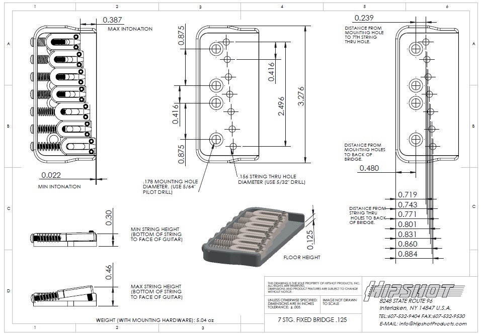 • CHEVALET HARDTAIL HIPSHOT 7 CORDES CHROME 0.125"