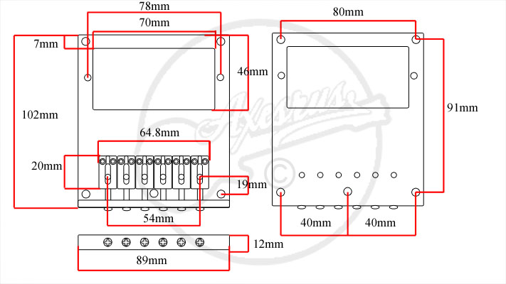 Distance de Mi à Mi : 54mm (10,8mm entre chaque corde)