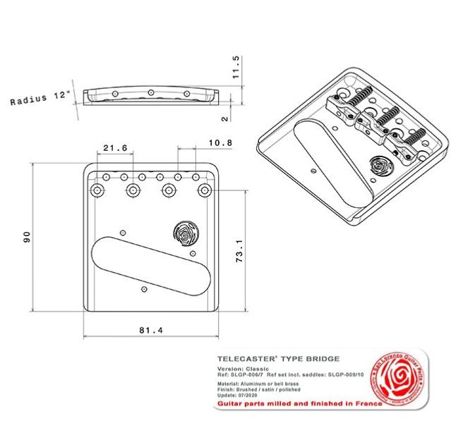 Fourni sans pontets, avec vis de fixation torx. Radius platine : 12".
