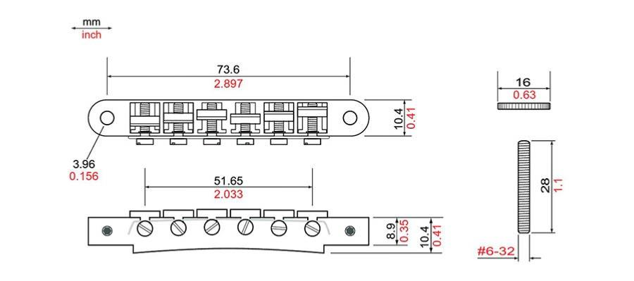 Toutes les mesures sur le site : http://www.tonepros.com/images/TonePros%20Specs.pdf