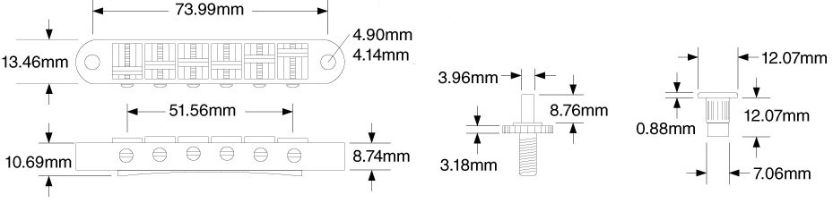 Toutes les mesures sur le site : http://www.tonepros.com/images/TonePros%20Specs.pdf