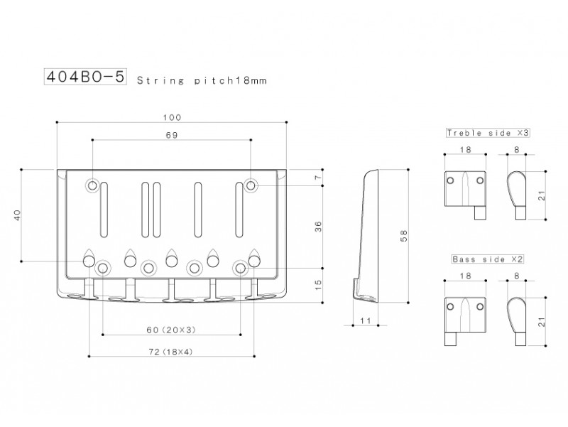 Ecartement moyen de Mi à Sol: 72mm (18mm d'espacement entre chaque corde).