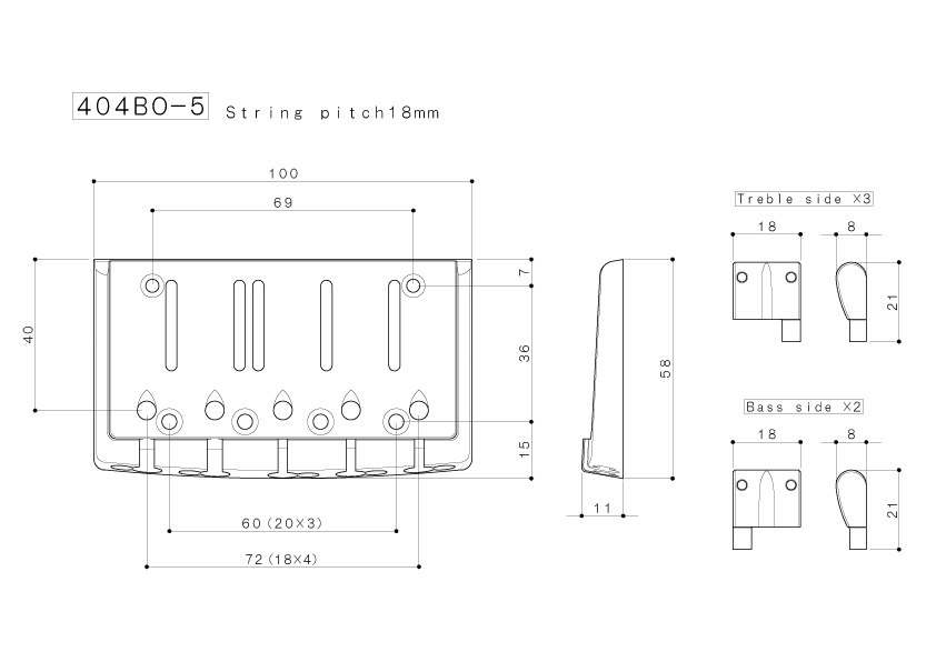 Ecartement moyen de Mi à Sol: 72mm (18mm d'espacement entre chaque corde).
