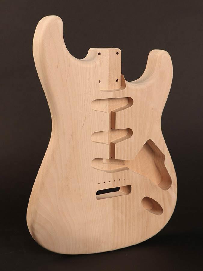 Ce corps est en aulne. Il a été scié à la CN, poncé parfaitement et est prêt pour la finition. Pas besoin de bouche-pores.