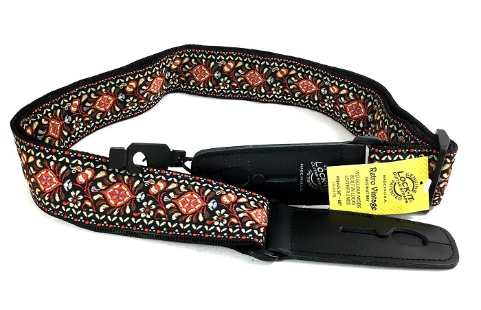 Lock-it est une marque de courroies fabriquées artisanalement aux Etats-Unis. Elle propose des courroies de qualité avec la particularité d'inclure une tirette qui bloque la courroie sur l'instrument. Ceci aisément avec un doigt !