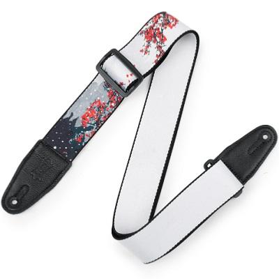 COURROIE POLYESTER EMBOUTS CUIR DE MARQUE LEVY'S SERIE MPD2 MODELE JAPANESE TRADITIONAL CHERRY BLOSSOMS AND SNOW