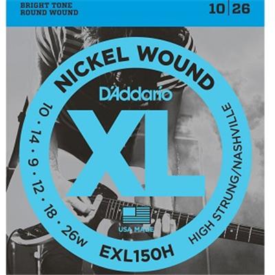 Les cordes EXL150H Nashville Tuning, également appelées High-Strung Tuning, utilisent les cordes d'octave supérieure d'un jeu 12 cordes pour obtenir un son scintillant et « jangly ». Cet accordage est populaire chez les musiciens de studio pour doubler une guitare 6 cordes et obtenir un effet 12 cordes.