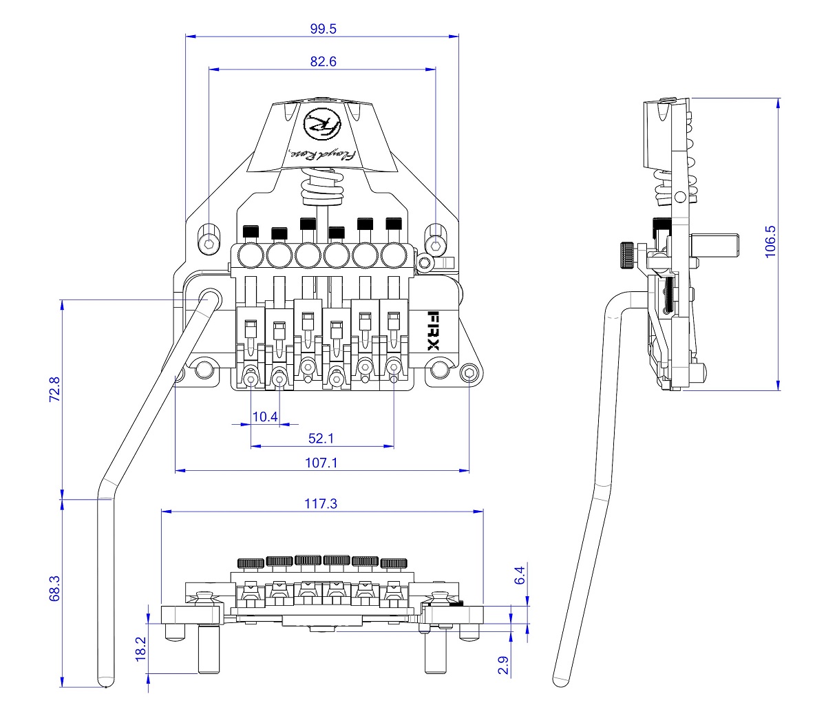 Floyd Rose propose un tremolo à installer facilement sur son modèle type Les Paul, SG ou Flying V. Il suffit juste de prendre appui sur les rivets déjà existants et d'installer le système. Inutile de percer !