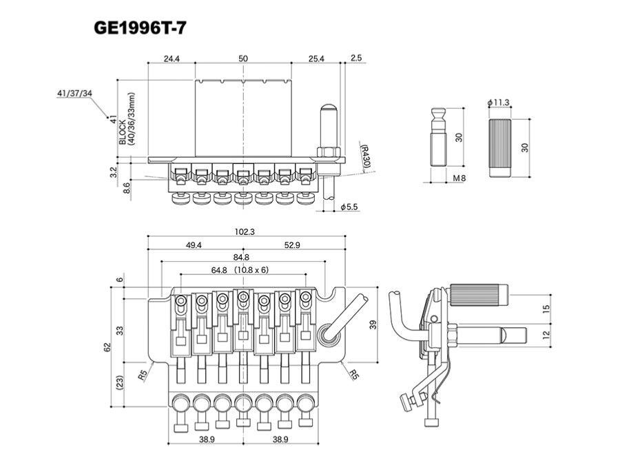 • FLOYD ROSE GOTOH NOIR GE1996T-7 (BLOC 36mm) 7 CORDES