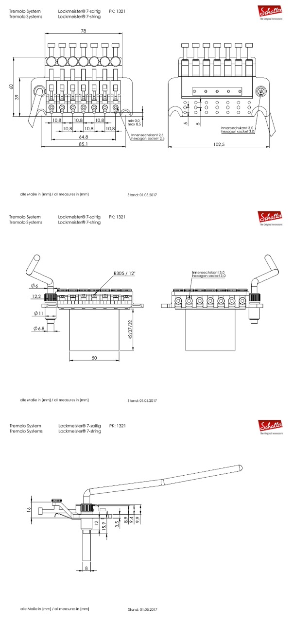 Les dimensions du chevalet LOCKMEISTER sont les mêmes que le FLoyd Rose original et la version par Schaller. L'installation est donc simple et ne requiert pas d'avoir le niveau polytechnique.