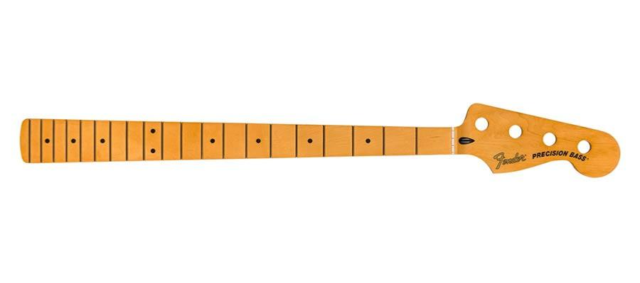 Les manches de rechange Fender sont fabriqués dans l'usine de la marque à partir des mêmes spécifications que celles utilisées pour produire les manches montés sur nos instruments. Ce manche de conversion P/J Bass est fabriqué à Ensenada au Mexique. Il est surmonté d’une touche en érable ou en pau ferro au rayon de 12” (305 mm) avec 20 frettes medium jumbo. Ce manche en érable présente un confortable profil ”Modern C” avec une finition uréthane satinée très douce à l’avant et à l’arrière. La tête de manche a reçu une finition brillante et est ornée d’un authentique autocollant de Precision Bass pour compléter le look classique.