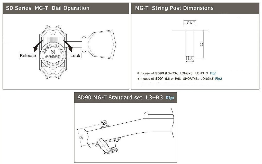 • MECANIQUES 3x3 GOTOH SD90-MGT BLOCAGE FORME GIBSON VINTAGE PEARLOID
