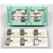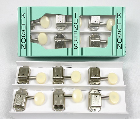 Les mécaniques KLUSON sont célèbres pour avoir habillé les plus grandes marques de guitares. Ces mécaniques à bain d'huile possèdent un bouton de forme dite KLUSON en plastique blanc cassé.