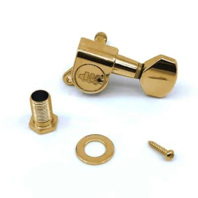 Ce sont des mécaniques standard. Avec une vis d'attache en biais et un trou de perce de 10mm. Adaptable donc sur l'immense majorité des guitares.