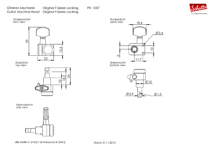 Pour information, Schaller a longtemps travaillé pour Fender. Jusqu'au jour où la marque américaine a préféré délocaliser une partie de la production pour des raisons de coûts. C'est pourquoi Schaller offre toujours des mécaniques de qualité coulées avec des métaux allemands réputés.