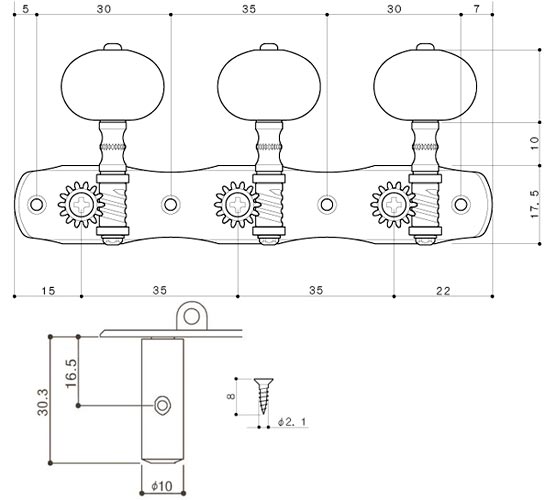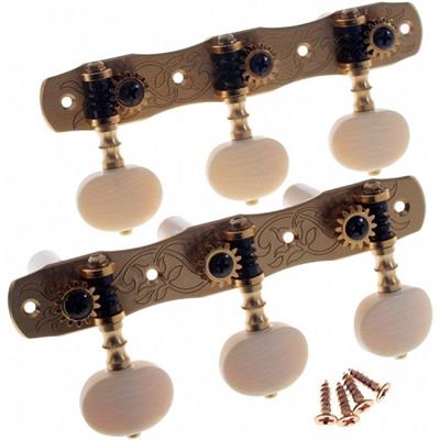 Modèle pouvant être installé sur guitares classique grâce à son axe en plastique. Série CLASSIQUE: Mécaniques en laiton à engrenage de précision pour un défilement parfait. Vis de tension réglable au niveau du bouton pour un accordage plus souple. Forme No Lyre, pour ceux et celles qui désirent changer des deux formes traditionnelles qui existent (lyre et hauser)
