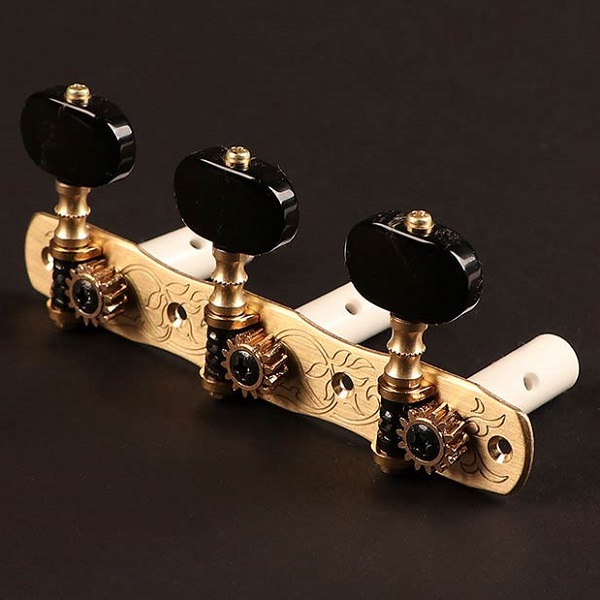Modèle pouvant être installé sur guitares classique grâce à son axe en plastique. Série CLASSIQUE: Mécaniques en laiton à engrenage de précision pour un défilement parfait. Vis de tension réglable au niveau du bouton pour un accordage plus souple. Forme No Lyre, pour ceux et celles qui désirent changer des deux formes traditionnelles qui existent (lyre et hauser)