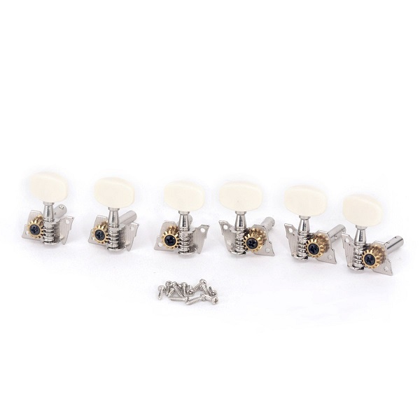 JEU COMPLET DE 6 MÉCANIQUES DE MARQUE GEWA SÉRIE FOLK/JAZZ MODÈLE NICKEL BOUTONS PLASTIQUE
