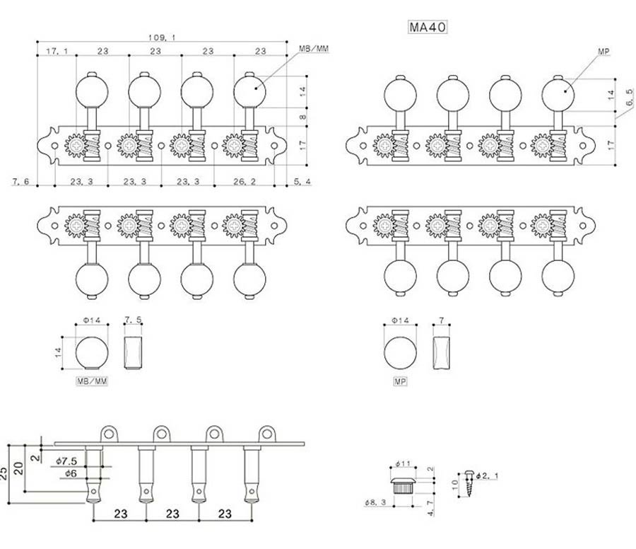 • MECANIQUES MANDOLINE GOTOH MA40 DOREES BOUTONS MB