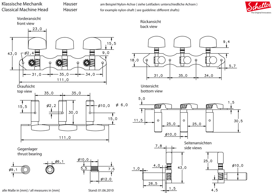• MECANIQUES GUITARE CLASSIQUE SCHALLER HNI HAUSER NICKEL BOUTONS ACRYLIC