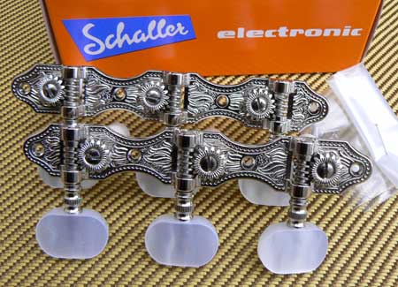JEU COMPLET DE MÉCANIQUES POUR GUITARE CLASSIQUE DE MARQUE SCHALLER SÉRIE HAUSER MODÈLE NICKEL/ACRYLIC