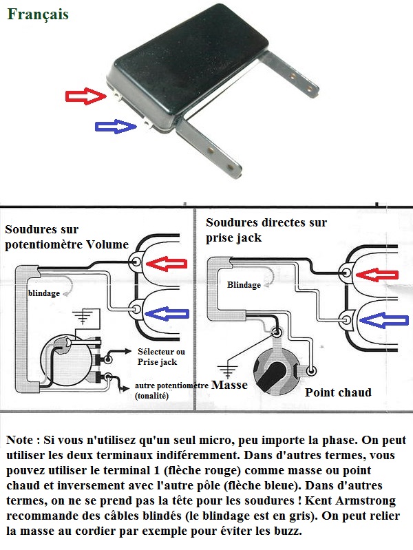 Vous avez donc le choix entre un micro manche qui se visse par deux pattes directement sur le côté de l'extrémité du manche. Et un micro flottant qui se fixe directement sur le pickguard sans qu'on ait besoin de toucher à la lutherie.