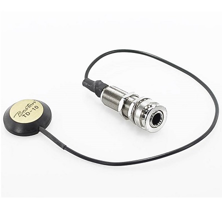 Tout comme le piezo, le Transduceur amplifie les vibrations qu'il reçoit. Le piezo se présente sous la forme d'une barrette, le transduceur sous la forme d'une pastille.Le résultat est plus naturel pour les transduceurs que les piezo.