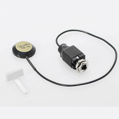 Tout comme le piezo, le Transduceur amplifie les vibrations qu'il reçoit. Le piezo se présente sous la forme d'une barrette, le transduceur sous la forme d'une pastille.Le résultat est plus naturel pour les transduceurs que les piezo.