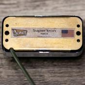 Modèle SUPER'TRON (réplique des micros début années 60 avec un rail au lieu de pôles. Le rail est arqué pour le chevalet afin de lui fournir plus de punch. Il est plat pour la position manche)