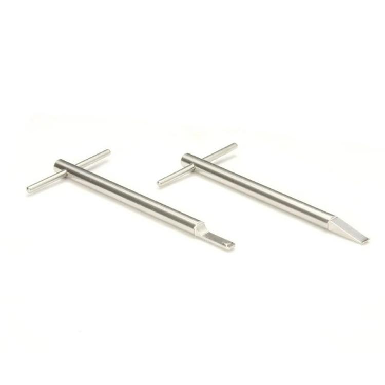 Le set se compose de deux éléments avec l’outil d’extraction d’insert pratique H.I.P.TOOL™ et l’OUTIL D’ALIGNEMENT. Cet ensemble d’outils innovants permet de retirer les inserts des pontets de serrage de cordes neufs ou usagés pour les chevalets de vibrato à double verrouillage O.E.M. Floyd Rose® et de nombreuses versions de trémolos à double verrouillage sous licence Floyd Rose®.