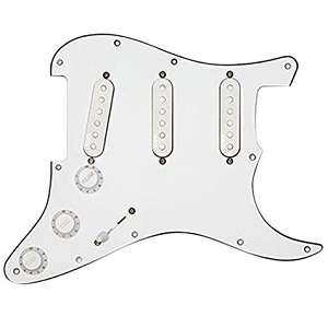 Vous pouvez sans soudure changer totalement l'électronique de votre Strat grâce à ce pickguard pré-assemblé. Les éléments se clipsent sans soudure, même la prise jack !