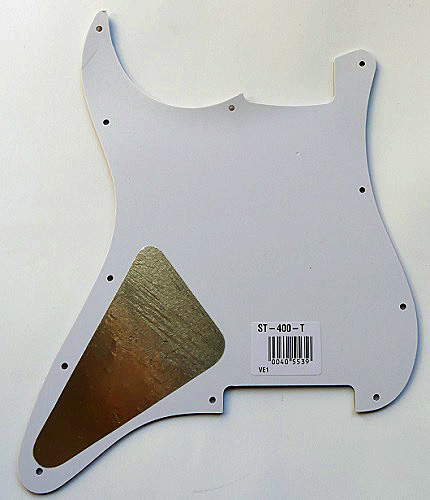 Position des trous de fixation type 62'. Identique à la forme standard à part la vis à gauche au niveau du micro du milieu qui est placée différemment. Voyez la fiche d'aide concernant les pickguard Strat 62 pour en savoir plus.