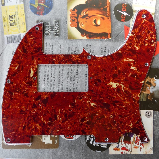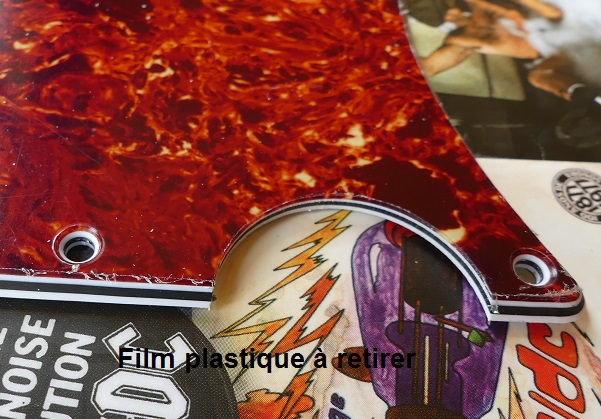 On appréciera sur ce pickguard les quatre plis (voir photo 2) et la véritable couche de celluloid couleur tortoise (ce n'est pas un simple décalcomanie posé). D'où le prix un peu plus élevé que la version Red Tortoise.