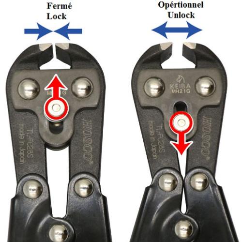 Un système de fermeture permet de prévenir le accidents en maintenant quasiment la pince fermée. Toutefois, l'ouverture (la distance entre les deux dents de la pince) fait 4mm. Difficile donc de se blesser.