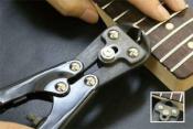 Pince pour couper impeccablement les frettes. Ce que nous aimons particulièrement sur cette pince, c'est d'abord ses deux maintiens en plastique "caoutchoutés" qui ne fatiguent pas les mains quand on doit presser fortement pur couper. Ceux qui utilisent des pinces tout en métal comprennent cette remarque !