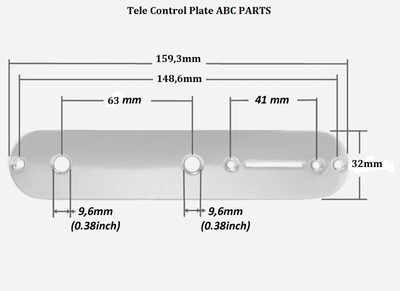 • PLAQUE CONTROLE TELECASTER CHROME US + VIS 32mm/9.6mm